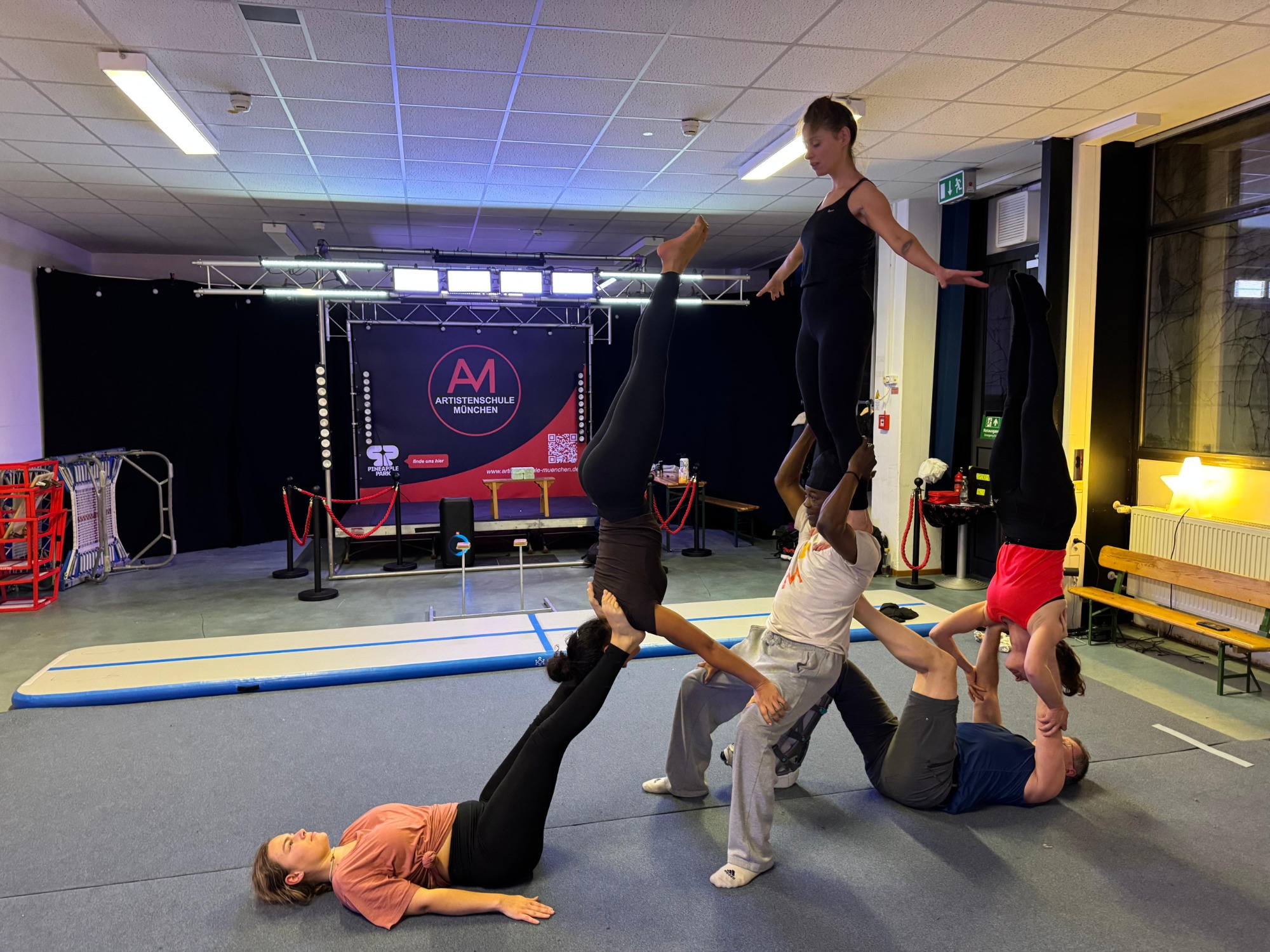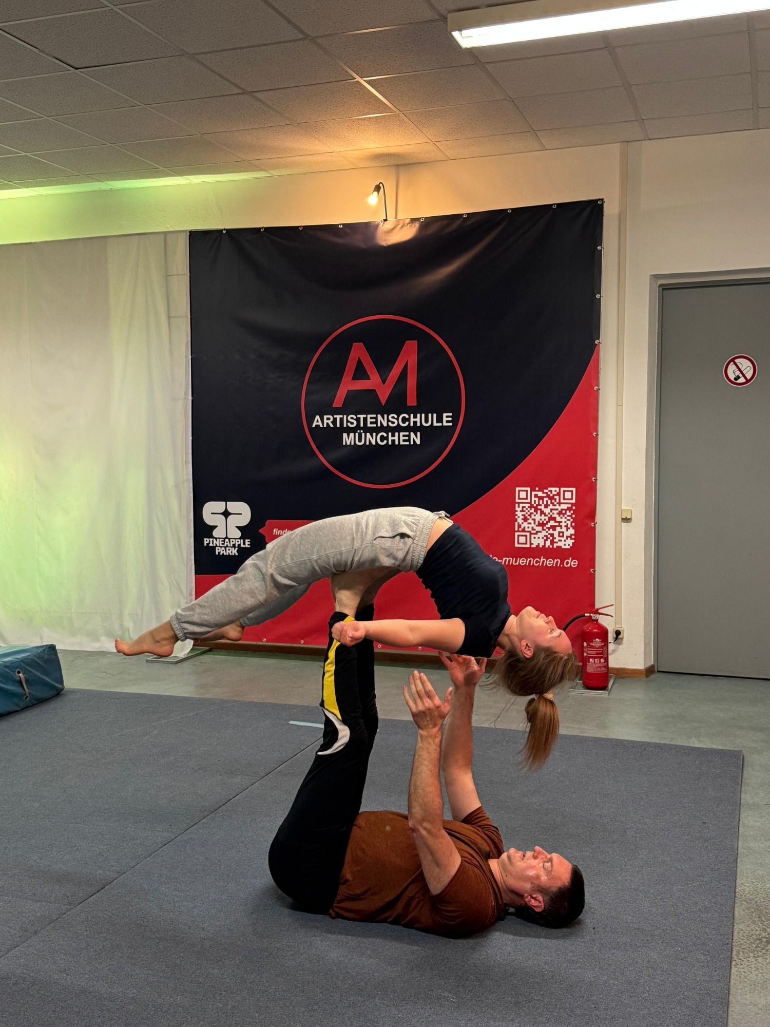 Die Artistenschule München präsentiert ihr umfassendes Kursprogramm für Acro Yoga in München. Entdecke die faszinierende Verbindung aus akrobatischer Kraft, yogischer Weisheit und der spielerischen Leichtigkeit des Miteinanders. Unsere Kurse sind für alle ab einem Alter von 16 Jahren konzipiert und bieten sowohl Anfängern als auch fortgeschrittenen Teilnehmern den perfekten Rahmen, um ihre Fähigkeiten zu entwickeln.